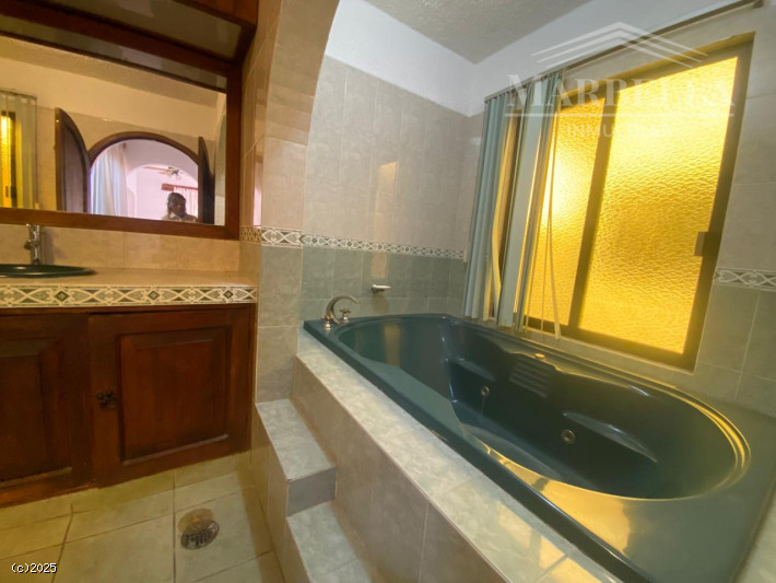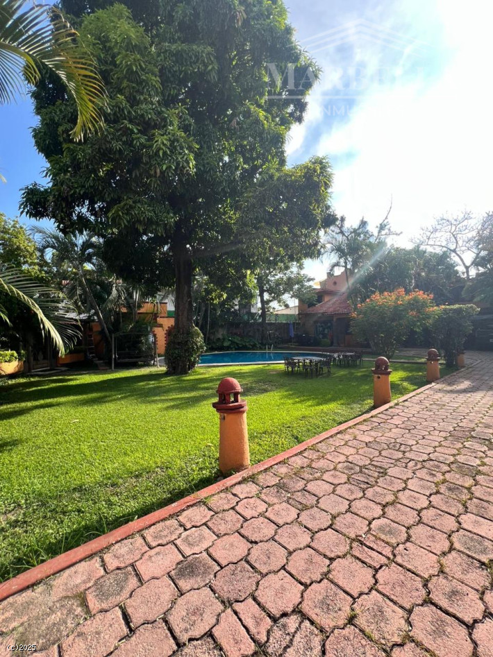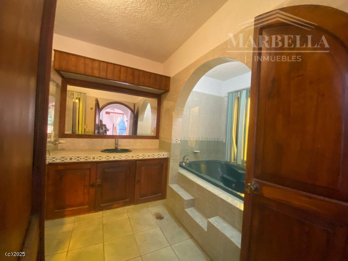 En el exterior, encontrarás un hermoso jardín privado con árboles y una terraza perfecta para reuniones. La alberca y el jacuzzi son ideales para relajarse. Además, cuenta con acceso para personas con discapacidad.