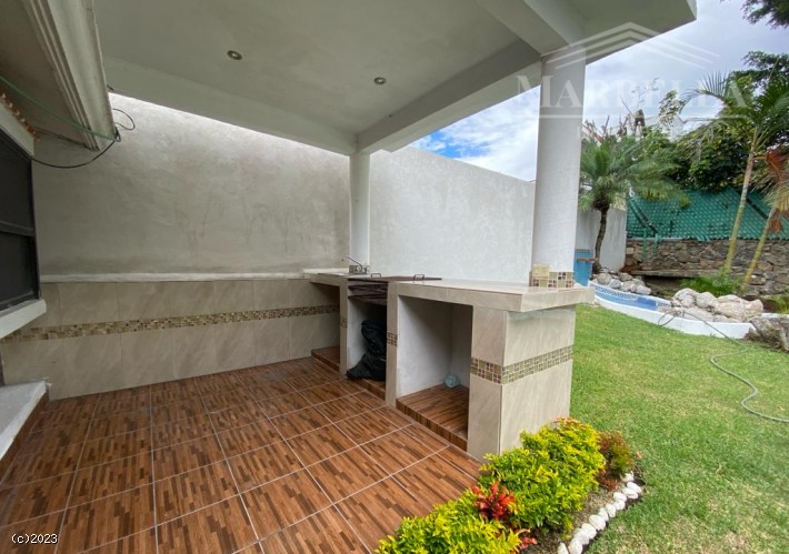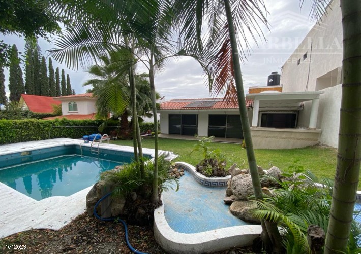 RENTE ESTA CASA EN UN NIVEL, CUENTA CON TRES RECÁMARAS, DOS BAÑOS, PALAPA EN EL JARDÍN, LA ALBERCA CUENTA CON CALDERA SOLAR O DE GAS. CON UN JARDÍN MUY AGRADABLE Y EXCELENTE UBICACIÓN EN ZONA PRIVADA Y PLANA.