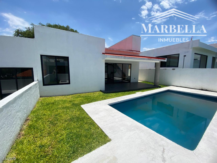 Estrene hermosa casa en sección tranquila. Cuenta con dos recámaras con baño cada una, además de un segundo nivel con estudio o tercera recámara. Garaje techado, terraza, jardín y alberca.