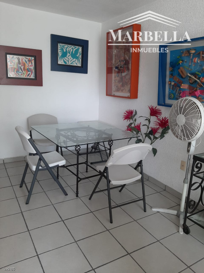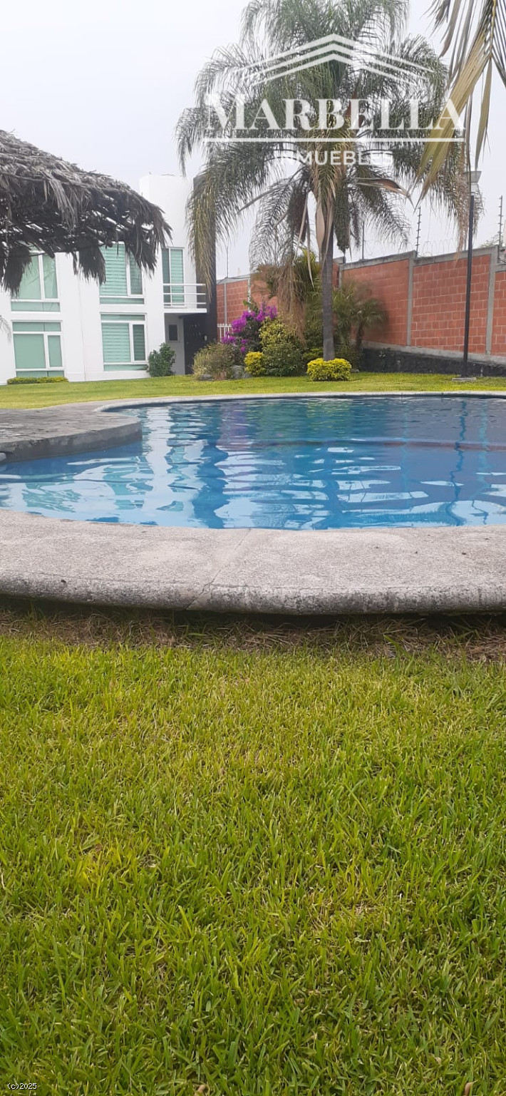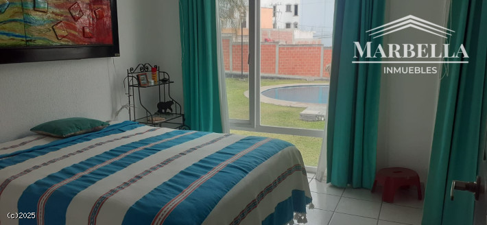 En un pequeño condominio el cual cuenta con un hermoso jardín con alberca y palapa, se encuentra esta excelente propiedad lista para habitar. Distribuida en 2 niveles cuenta con 3 recamaras; la principal con vista al jardín, 1 en planta baja con baño completo y otra más en planta alta, cocina, sala, comedor y 1 cajón de estacionamiento.