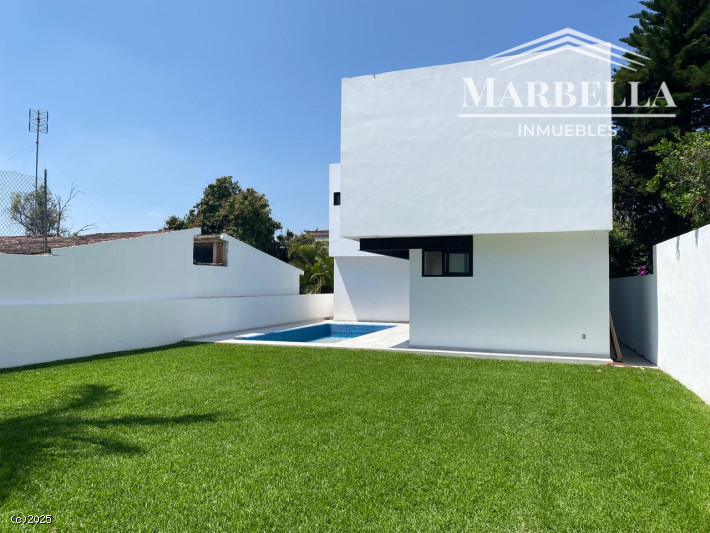 Estrene bellísima casa en fraccionamiento con vigilancia las 24 horas. En dos niveles con 3 habitaciones y closets walk-in, con aires acondicionados. Ademas 2 medios baños para dar servicio a la estancia y jardín. Cocina equipada y cuarto de lavandería, bodega de almacenamiento. Agradable jardín con alberca equipada y garaje para dos autos.