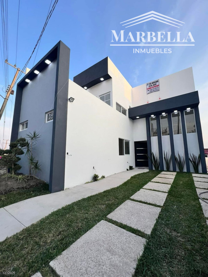 Estrene hermosa casa en dos niveles, cuenta con 4 habitaciones con baño cada una, además baño de visitas y baño en la zona de alberca. Cocina equipada con isla, amplia terraza, jardín agradable con alberca la cual está equipada con luz. Además roof garden con vista.