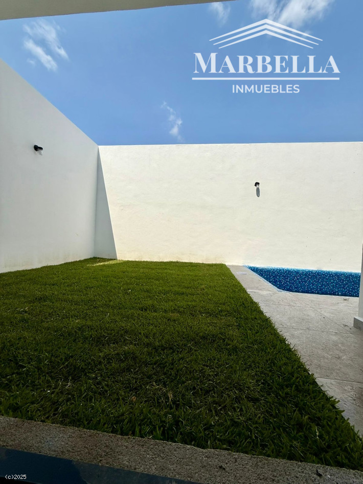 Estrene hermosa casa en fraccionamiento con vigilancia. Construida en dos niveles, consta de tres habitaciones, dos baños y medio. Jardín privado con alberca, cocina equipada, área de lavado. Estacionamiento. El fraccionamiento cuenta con vigilancia y un jardín con alberca. Muy buena ubicación.