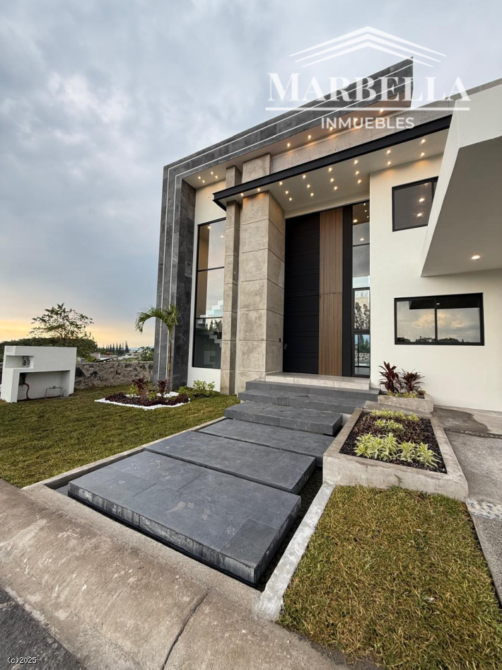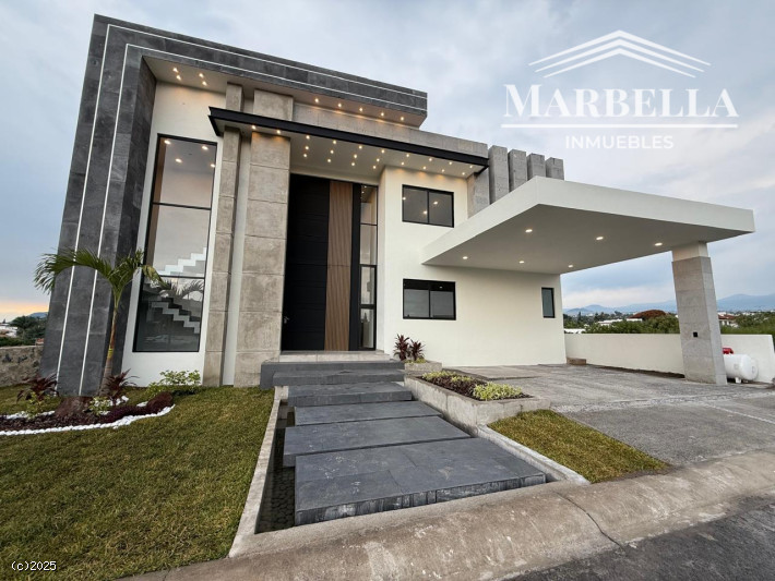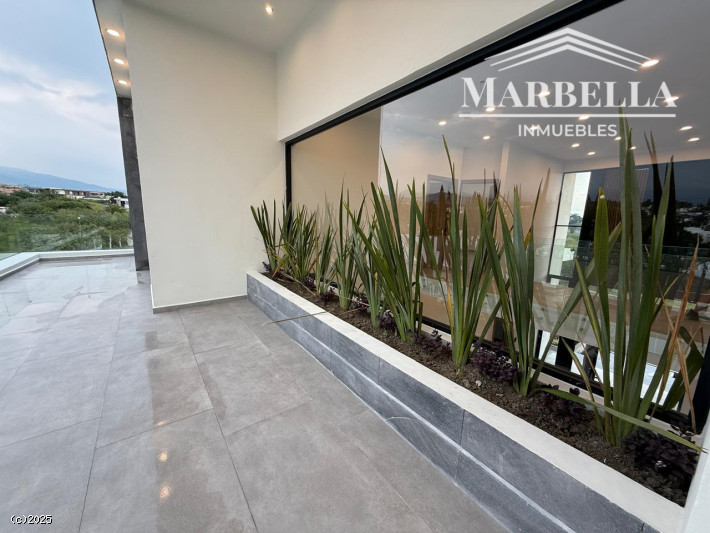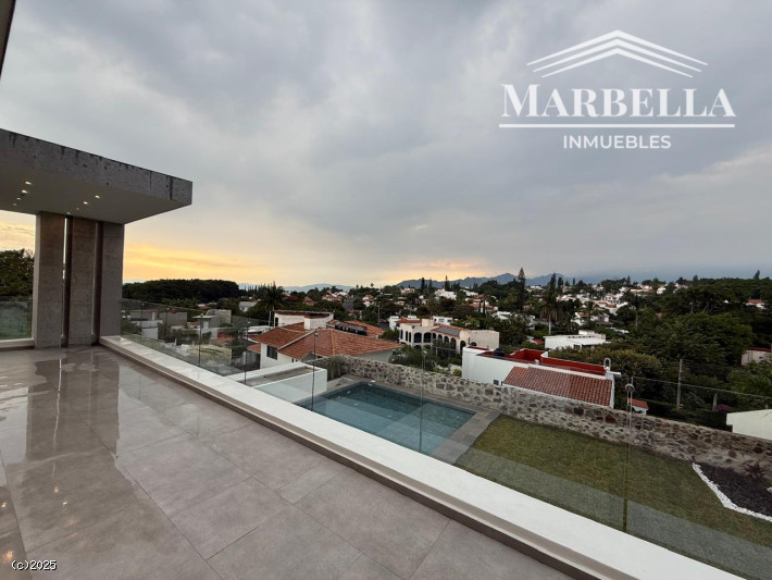 Hermosa residencia ubicada en una de las mejores zonas de Lomas de Cocoyoc. En la entrada se aprecia un espejo de agua que decora las huellas peatonales. Construida en tres niveles. Cuenta con cuatro recámaras con baño y vestidor, una ubicada en planta baja. En el segundo nivel se encuentra una terraza con una vista espectacular. En el primer nivel se ubica la cocina equipada con isla con los mejores acabados., amplia estancia sala-comedor y baño para visitas. Además amplia terraza, alberca cubierta con porcelanato el cual da frescura y calidez a la misma. Chapoteadero, jacuzzi y una sala hundida de la cual se aprecia la alberca a través de las paredes de vidrio. Cuenta con baño que da servicio al jardín y asador cubierto para disfrutar con la familia. También cuenta con sala de cine o salón de juegos con baño completo y cava. El área de servicio es muy amplia. El garaje es techado para dos autos. Visítenos, le encantará!