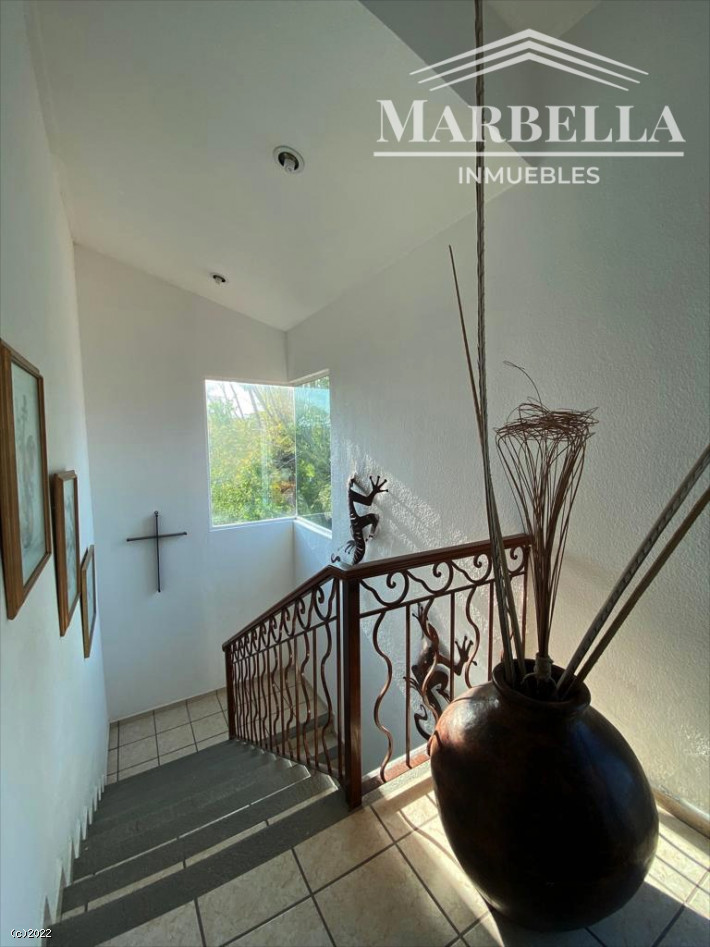 Excelente propiedad distribuida en 2 niveles la cual ofrece 4 recamaras; 1 en planta baja con baño completo, la principal con baño completo, amplia sala y comedor, cocina equipada con barra, patio de servicio, amplia terraza con vigas de madera, gran jardín con alberca y jacuzzi, estacionamiento techado, bonita decoración y excelente ubicación.